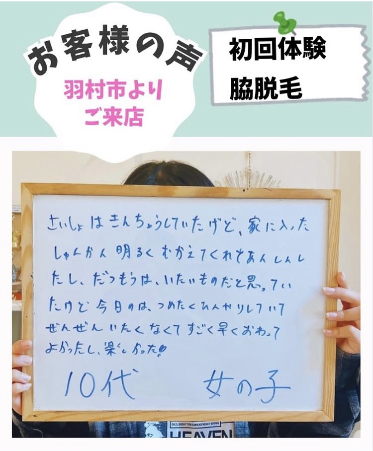 上手くそることができなかったけど、丁寧にやってくれました。全身やるときと同じように、楽しく話しながらできたので、めっちゃリラックスできました!